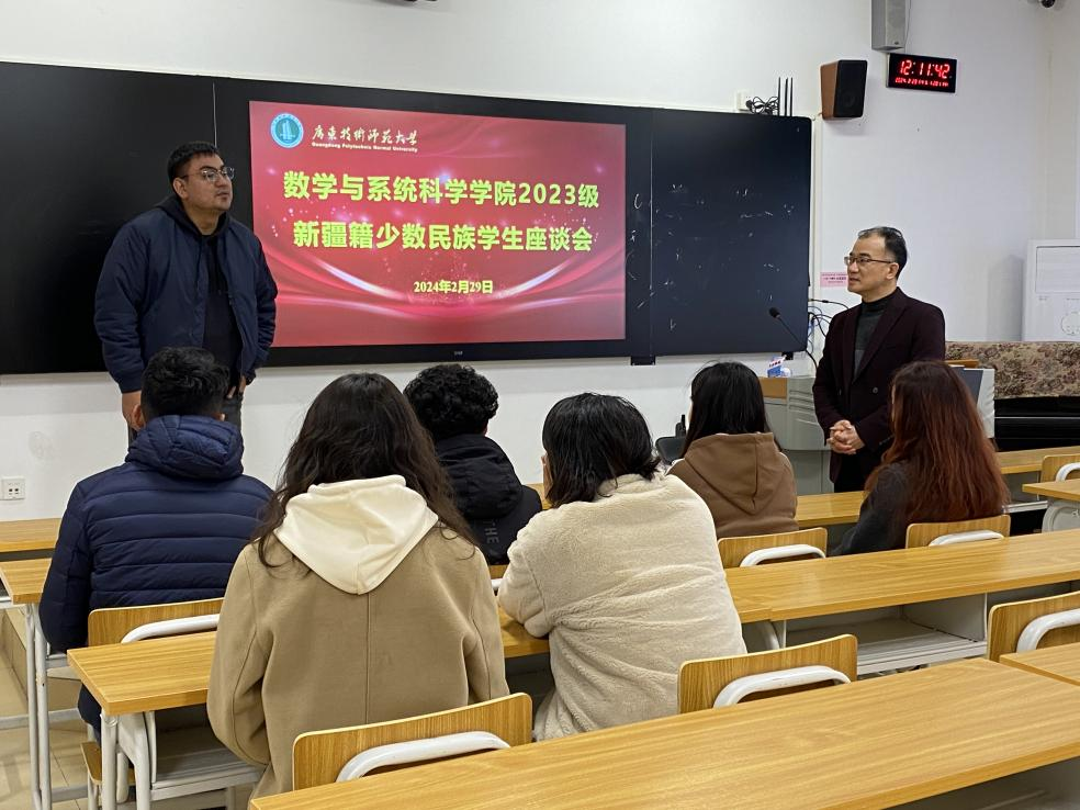 為深入了解2023級少數民族生學習、生活情況,進一步加強新疆籍學生的服務管理工作,2024年2月29日,在河源校區(qū)求實樓205召開了新疆籍學生座談會。會議由亞地卡爾老師主持,學院黨委副書記許國良,輔導員李玉佳老師出席了會議。