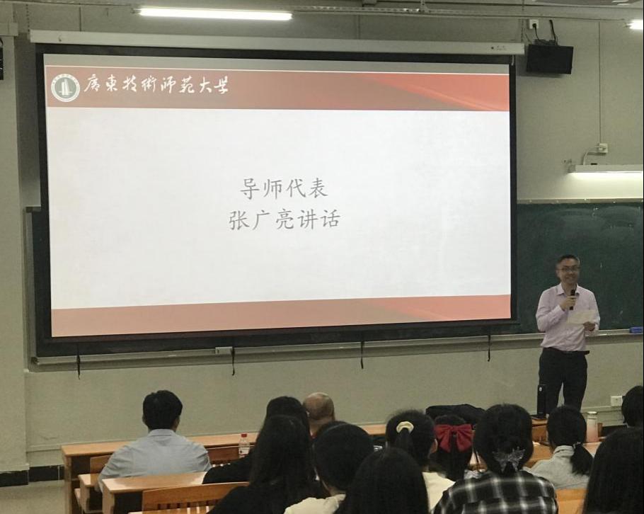 張廣亮作為導(dǎo)師代表發(fā)言。他說明了學(xué)院推行導(dǎo)師制的初衷是希望在同學(xué)們成長的關(guān)鍵點上,能夠得到具有豐富學(xué)習(xí)經(jīng)歷、生活閱歷和育人熱情的導(dǎo)師的指導(dǎo)和幫助。隨后,他向同學(xué)們提出了幾點建議和期望:要主動和導(dǎo)師聯(lián)系,要帶著問題找老師,要在跟隨導(dǎo)師增進(jìn)學(xué)業(yè)的同時,還要學(xué)會做人,帶著感恩的心和導(dǎo)師溝通。