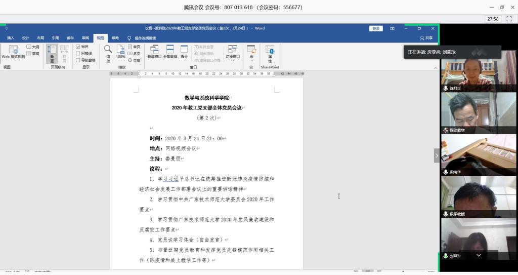 會(huì)議內(nèi)容包括:一是學(xué)習(xí)習(xí)近平總書記在統(tǒng)籌推進(jìn)新冠肺炎疫情防控和經(jīng)濟(jì)社會(huì)發(fā)展工作部署會(huì)議上的重要講話精神;二是學(xué)習(xí)貫徹中共廣東技術(shù)師范大學(xué)委員會(huì)2020年工作要點(diǎn);三是學(xué)習(xí)貫徹廣東技術(shù)師范大學(xué)2020年黨風(fēng)廉政建設(shè)和反腐敗工作要點(diǎn);四是黨員談學(xué)習(xí)體會(huì)(自由發(fā)言);五是布置近期黨員教育和發(fā)揮黨員先鋒模范作用相關(guān)工作(防疫情和線上教學(xué)工作等)。