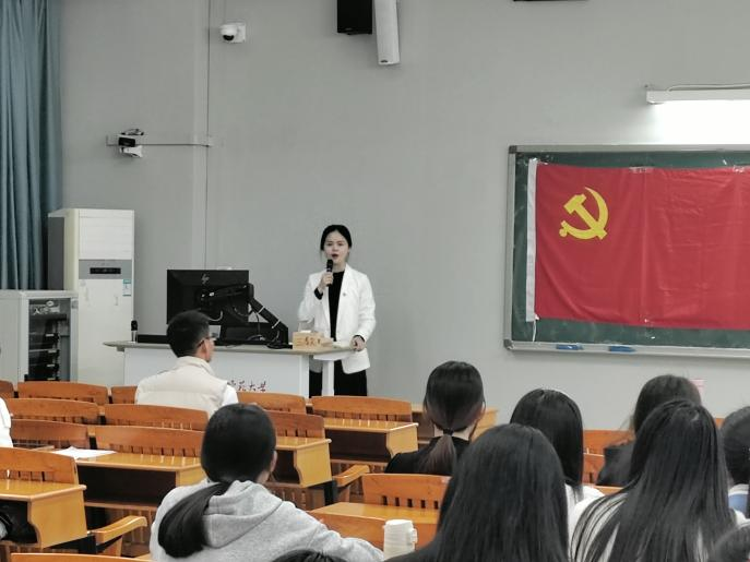 會上,全體黨員共同學習習近平總書記在全國“兩會”期間的重要講話和全國“兩會”精神,學生黨員唐婕妍、紀曉敏作為黨員代表領學并作學習心得分享。